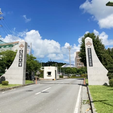 名護市にある名桜大学のエイサーサークル「名桜エイサー」です。1996年結成。地域の青年会から伝統エイサーを教わりつないでいます。